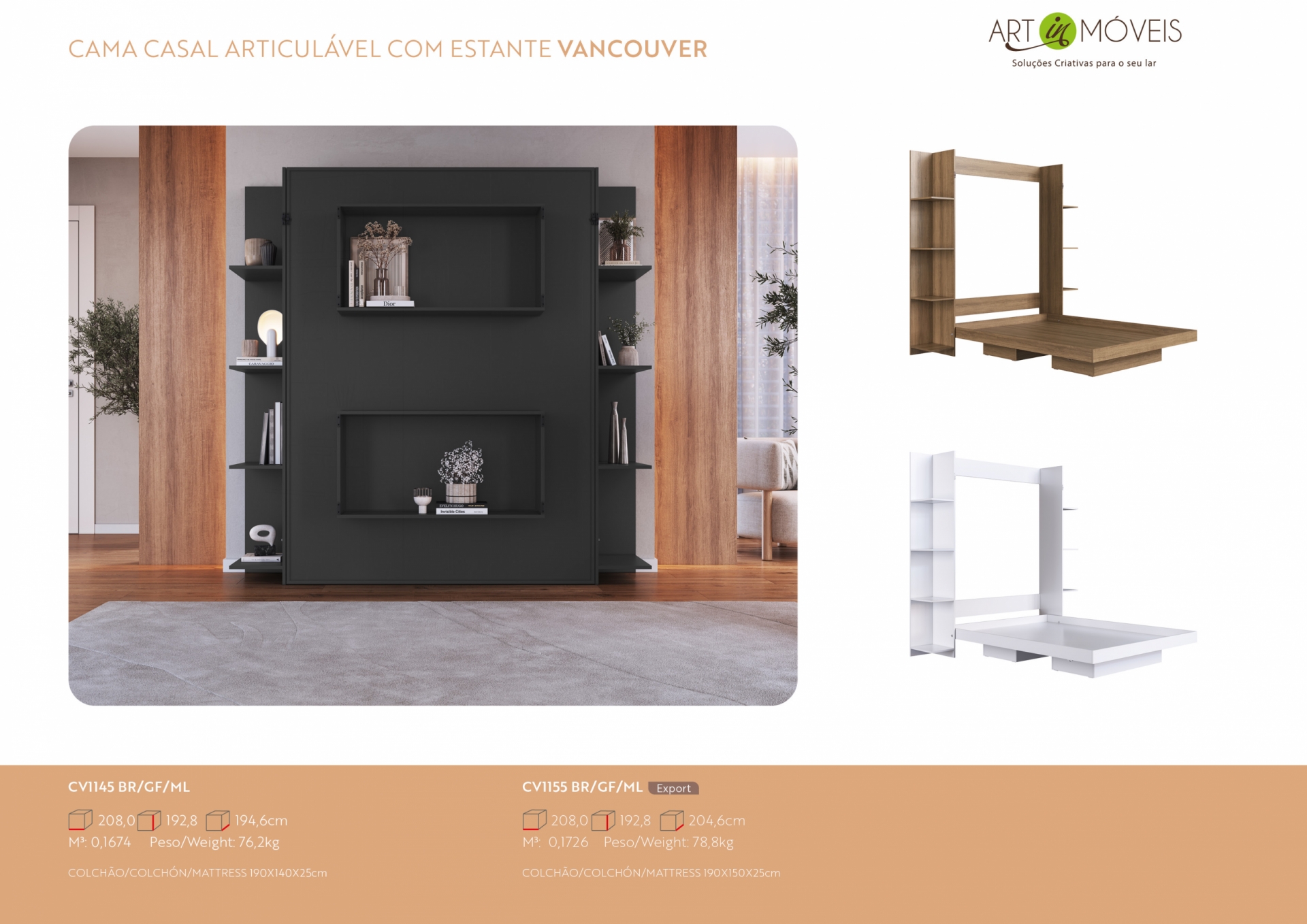 Cama Casal Articulável com Estante Vancouver