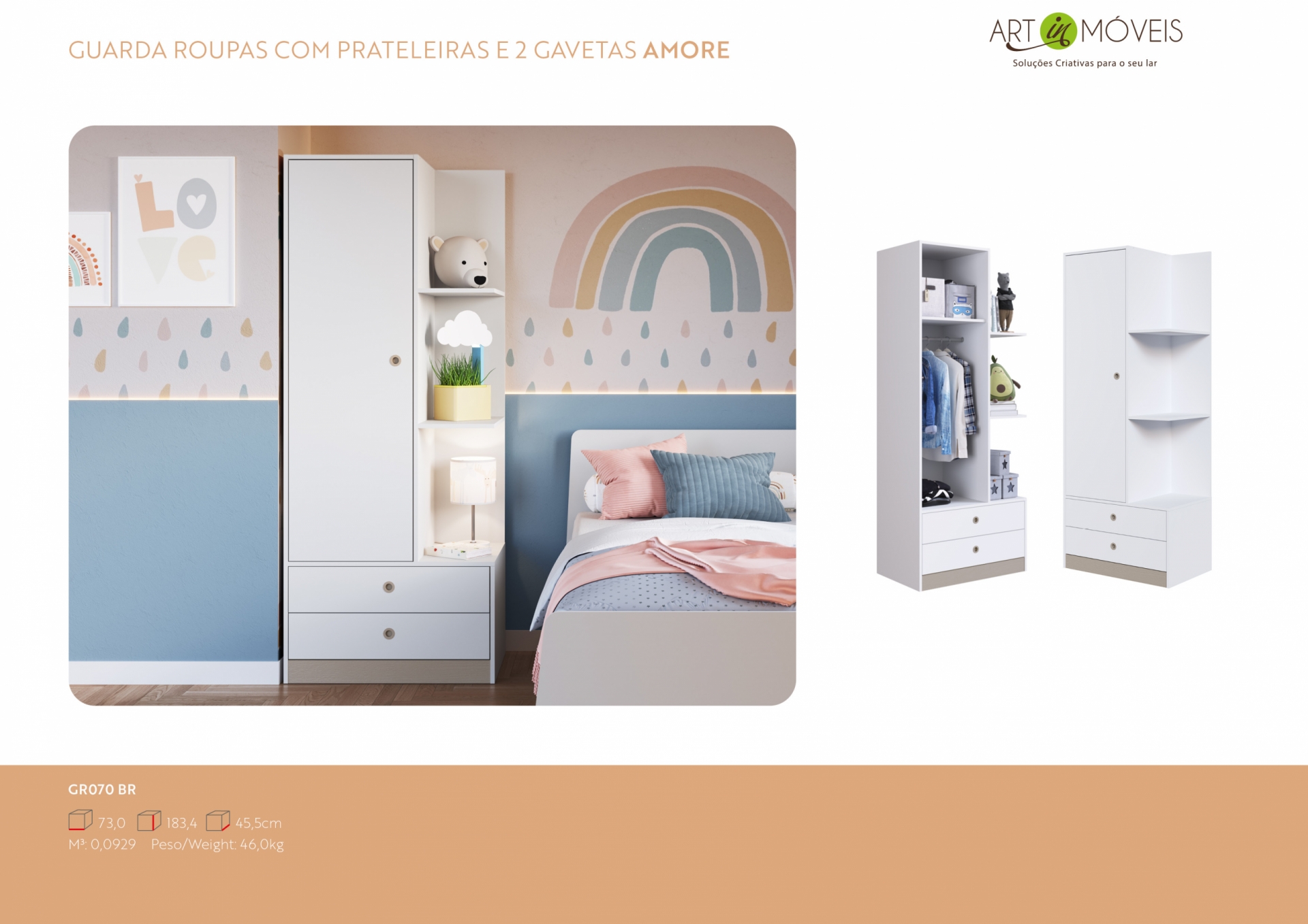 Guarda Roupas com Prateleira e 2 Gavetas Amore