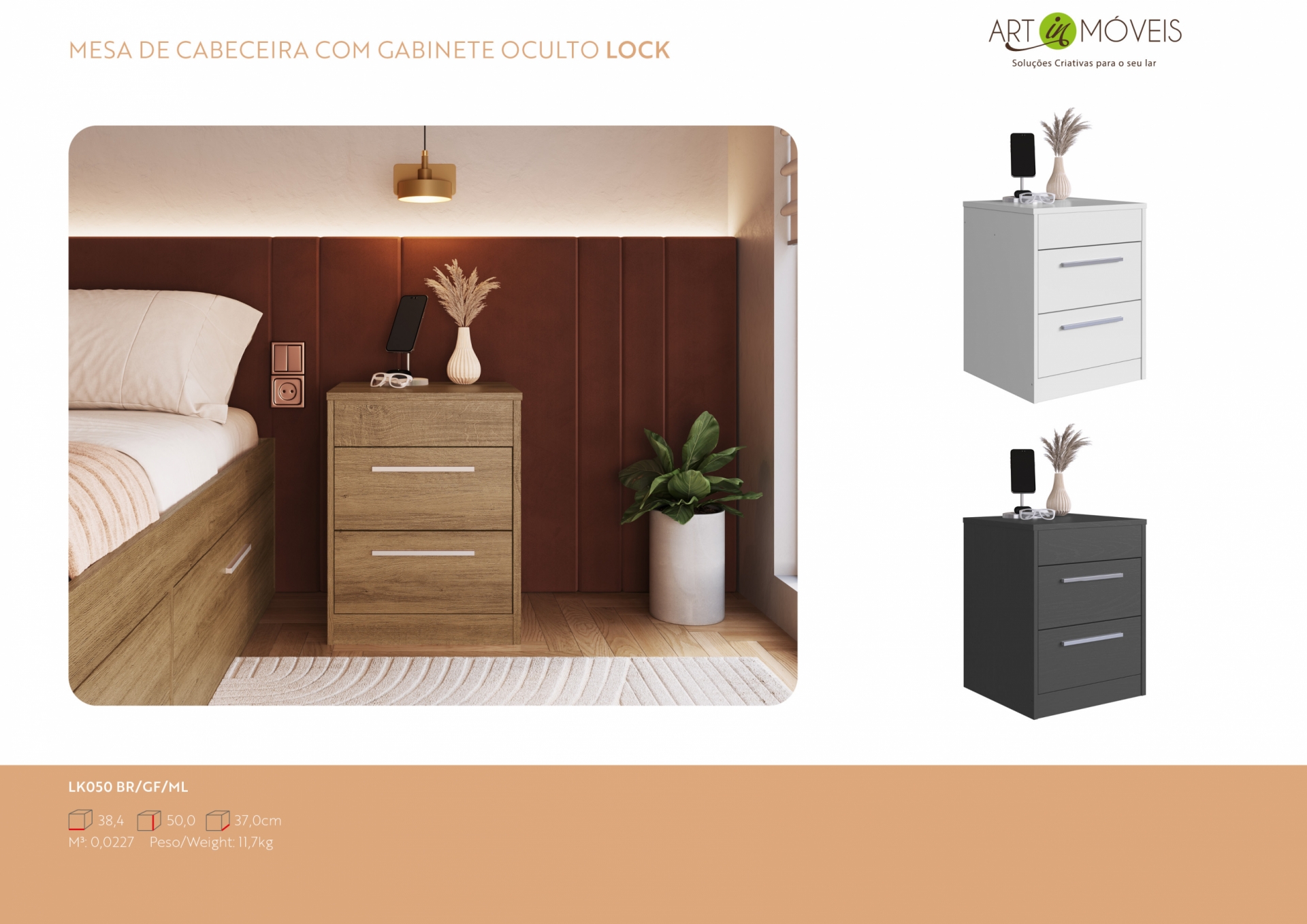 Mesa de Cabeceira com Gabinete Oculto Lock